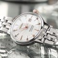 The Clover Club: a true ladies' favorite. You make this soft raspberry cocktail by mashing raspberries and mixing them with gin and lemon juice. This results in a very smooth, cloudy pink cocktail with a bit of a kick. Loosely translated to the dial of the SRE009J1 with its soft color and a pattern in the relief.