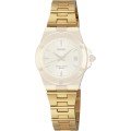 This Seiko watch strap is made of stainless steel and is attached to the watch by means of steel pins. The band has a width of 14 mm and is closed by means of a deployment clasp with push buttons. The strap has no straight mount which means that this strap is only suitable for the watches listed below.
