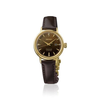 This Seiko watch has a case made of stainless steel with a diameter of 30.3 mm and is fitted with a leather band. Inside the case lies a Seiko movement and the watch features a Hardlex crystal crystal.