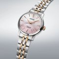 This Seiko watch has a case made of stainless steel with a diameter of 34 mm and is fitted with a stainless steel band. Inside the case lies a Seiko movement and the watch features a Hardlex crystal crystal.