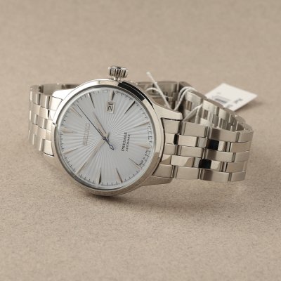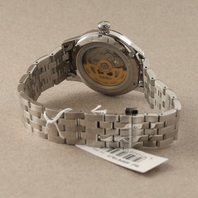 This Seiko watch has a case made of stainless steel with a diameter of 40.5 mm and is fitted with a stainless steel band. Inside the case lies a Seiko movement and the watch features a Hardlex crystal crystal.