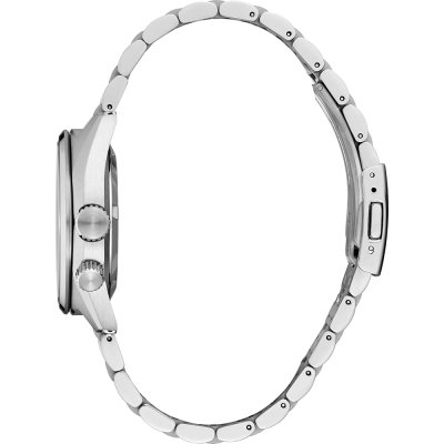 This Seiko watch has a case made of stainless steel with a diameter of 39 mm and is fitted with a stainless steel band. Inside the case lies a Seiko movement and the watch features a Single anti-reflective sapphire crystal.