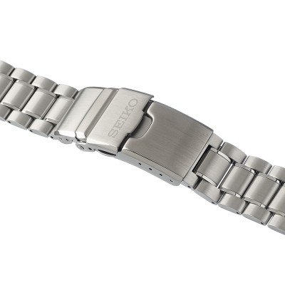 This Seiko watch strap is made of stainless steel and is attached to the watch by means of pushpins. The band has a width of 20 mm and is closed by means of a deployment clasp with push buttons and safety. The strap has no straight mount which means that this strap is only suitable for the watches listed below.