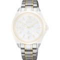 This Seiko watch has a case made of stainless steel with a diameter of 34 mm and is fitted with a stainless steel band. Inside the case lies a Seiko movement and the watch features a Sapphire crystal.