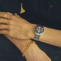 This Seiko watch has a case made of stainless steel with a diameter of 38 mm and is fitted with a stainless steel band. Inside the case lies a Seiko movement and the watch features a Hardlex crystal crystal.