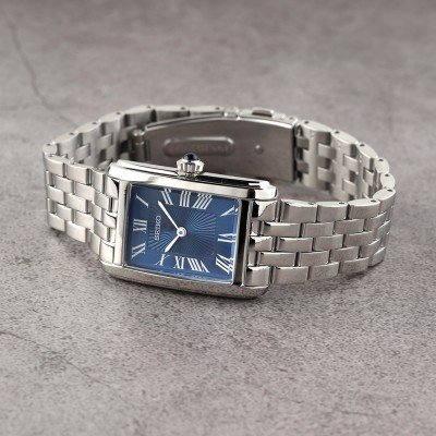 This Seiko watch has a case made of stainless steel with a diameter of 22.2 mm and is fitted with a stainless steel band. Inside the case lies a Seiko movement and the watch features a Hardlex crystal crystal.