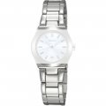 This Seiko watch strap is made of stainless steel and is attached to the watch by means of steel pins. The band has a width of 14 mm and is closed by means of a deployment clasp with push buttons. The strap has no straight mount which means that this strap is only suitable for the watches listed below.
