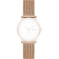 This Skagen watch strap is made of stainless steel and is attached to the watch by means of pushpins. The band has a width of 16 mm and is closed by means of a milanese clasp. The strap has no straight mount which means that this strap is only suitable for the watches listed below.