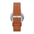 This Skagen watch has a case made of stainless steel with a diameter of 40 mm and is fitted with a leather band. Inside the case lies a Miyota movement and the watch features a Mineral crystal.