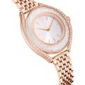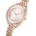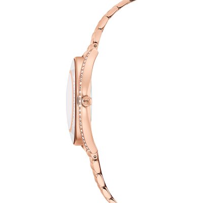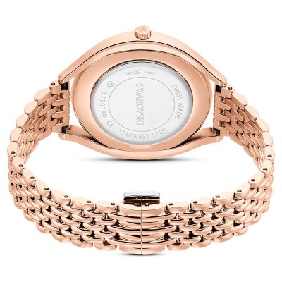 This Swarovski watch has a case made of stainless steel with a diameter of 35.5 mm and is fitted with a stainless steel band. Inside the case lies a Ronda movement and the watch features a Mineral crystal.