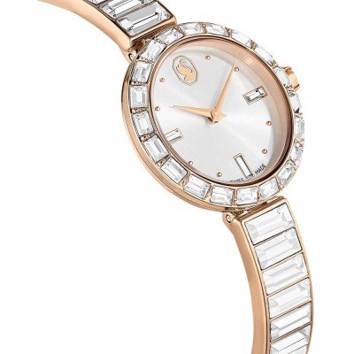 This Swarovski watch has a case made of stainless steel with a diameter of 25 mm and is fitted with a stainless steel band. Inside the case lies a Ronda movement and the watch features a Mineral crystal.