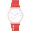 This Swatch watch strap is made of silicone and is attached to the watch by means of steel pins. The band has a width of 17 mm and is closed by means of a buckle. The strap has no straight mount which means that this strap is only suitable for the watches listed below.