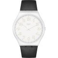 This Swatch watch strap is made of leather and is attached to the watch by means of steel pins. The band has a width of 20 mm and is closed by means of a buckle. The strap has no straight mount which means that this strap is only suitable for the watches listed below.