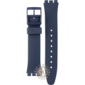 This Swatch watch strap is made of silicone and is attached to the watch by means of steel pins. The band has a width of 17 mm and is closed by means of a buckle. The strap has no straight mount which means that this strap is only suitable for the watches listed below.