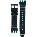 This Swatch watch strap is made of silicone and is attached to the watch by means of steel pins. The band has a width of 19.7 mm and is closed by means of a buckle. The strap has no straight mount which means that this strap is only suitable for the watches listed below.