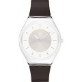 This Swatch watch strap is made of silicone and is attached to the watch by means of steel pins. The band has a width of 15.9 mm and is closed by means of a buckle. The strap has no straight mount which means that this strap is only suitable for the watches listed below.