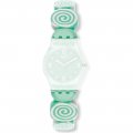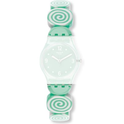 This Swatch watch strap is made of plastic/Resin and is attached to the watch by means of steel pins. The band has a width of 12 mm. The strap has no straight mount which means that this strap is only suitable for the watches listed below.