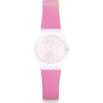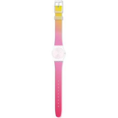 This Swatch watch strap is made of silicone and is attached to the watch by means of steel pins. The band has a width of 12 mm and is closed by means of a buckle. The strap has no straight mount which means that this strap is only suitable for the watches listed below.