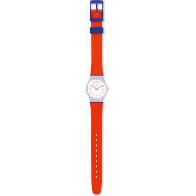 This Swatch watch strap is made of silicone and is attached to the watch by means of steel pins. The band has a width of 12 mm and is closed by means of a buckle. The strap has no straight mount which means that this strap is only suitable for the watches listed below.