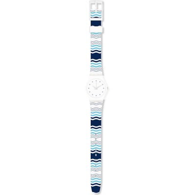This Swatch watch strap is made of silicone and is attached to the watch by means of steel pins. The band has a width of 12 mm and is closed by means of a buckle. The strap has no straight mount which means that this strap is only suitable for the watches listed below.