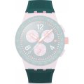 This Swatch watch strap is made of silicone and is attached to the watch by means of steel pins. The band has a width of 20.1 mm and is closed by means of a buckle. The strap has no straight mount which means that this strap is only suitable for the watches listed below.