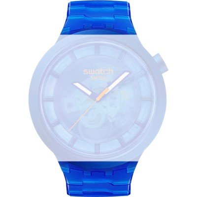 This Swatch watch strap is made of bio-sourced resin and is attached to the watch by means of steel pins. The band has a width of 19.7 mm and is closed by means of a butterfly clasp with push buttons. The strap has no straight mount which means that this strap is only suitable for the watches listed below.