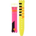 This Swatch watch strap is made of silicone and is attached to the watch by means of steel pins. The band has a width of 16.5 mm and is closed by means of a buckle. The strap has no straight mount which means that this strap is only suitable for the watches listed below.