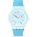 This Swatch watch strap is made of silicone and is attached to the watch by means of steel pins. The band has a width of 19.7 mm and is closed by means of a buckle. The strap has no straight mount which means that this strap is only suitable for the watches listed below.