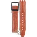 This Swatch watch strap is made of leather and is attached to the watch by means of steel pins. The band has a width of 17 mm and is closed by means of a buckle. The strap has no straight mount which means that this strap is only suitable for the watches listed below.