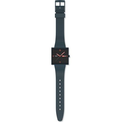 This Swatch watch has a case made of BioCeramic with a diameter of 33 mm and is fitted with a rubber band. Inside the case lies a ETA movement and the watch features a Acrylic crystal.