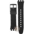 This Swatch watch strap is made of silicone and is attached to the watch by means of steel pins. The band has a width of 20.1 mm and is closed by means of a buckle. The strap has no straight mount which means that this strap is only suitable for the watches listed below.