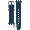 This Swatch watch strap is made of silicone and is attached to the watch by means of steel pins. The band has a width of 20.1 mm and is closed by means of a buckle. The strap has no straight mount which means that this strap is only suitable for the watches listed below.