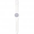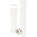 This Swatch watch strap is made of silicone and is attached to the watch by means of steel pins. The band has a width of 19.8 mm and is closed by means of a buckle. The strap has no straight mount which means that this strap is only suitable for the watches listed below.