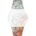 This Swatch watch strap is made of plastic/Resin and is attached to the watch by means of steel pins. The band has a width of 19.7 mm and is closed by means of a buckle. The strap has no straight mount which means that this strap is only suitable for the watches listed below.