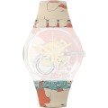 This Swatch watch strap is made of plastic/Resin and is attached to the watch by means of steel pins. The band has a width of 19.7 mm and is closed by means of a buckle. The strap has no straight mount which means that this strap is only suitable for the watches listed below.