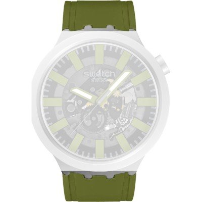 This Swatch watch strap is made of rubber and is attached to the watch by means of steel pins. The band has a width of 19.7 mm and is closed by means of a buckle. The strap has no straight mount which means that this strap is only suitable for the watches listed below.