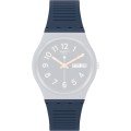 This Swatch watch strap is made of silicone and is attached to the watch by means of steel pins. The band has a width of 17 mm and is closed by means of a buckle. The strap has no straight mount which means that this strap is only suitable for the watches listed below.