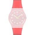 This Swatch watch strap is made of silicone/Rubber and is attached to the watch by means of steel pins. The band has a width of 17 mm and is closed by means of a buckle. The strap has no straight mount which means that this strap is only suitable for the watches listed below.