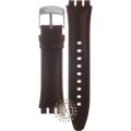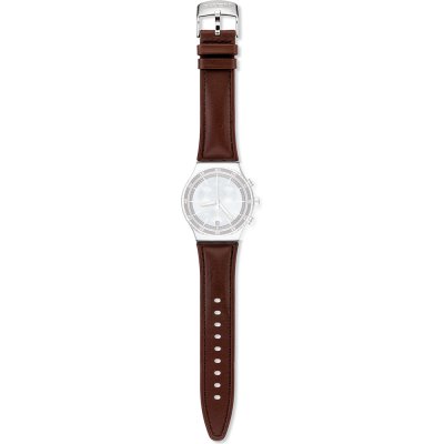 This Swatch watch strap is made of leather and is attached to the watch by means of steel pins. The band has a width of 21 mm and is closed by means of a buckle. The strap has no straight mount which means that this strap is only suitable for the watches listed below.