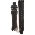 This Swatch watch strap is made of leather and is attached to the watch by means of steel pins. The band has a width of 18.9 mm and is closed by means of a deployment buckle. The strap has no straight mount which means that this strap is only suitable for the watches listed below.