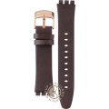 This Swatch watch strap is made of leather and is attached to the watch by means of steel pins. The band has a width of 18.9 mm and is closed by means of a buckle. The strap has no straight mount which means that this strap is only suitable for the watches listed below.