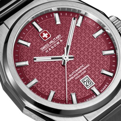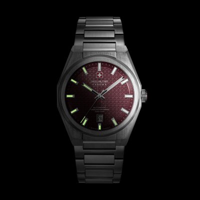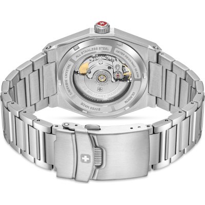 This Swiss Military Hanowa watch has a case made of stainless steel with a diameter of 41 mm and is fitted with a stainless steel band. Inside the case lies a Soprod movement and the watch features a Sapphire crystal.