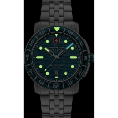 The watch is 20 ATM. This means the watch is suitable for diving. The watch comes with Swiss Military 3+2.