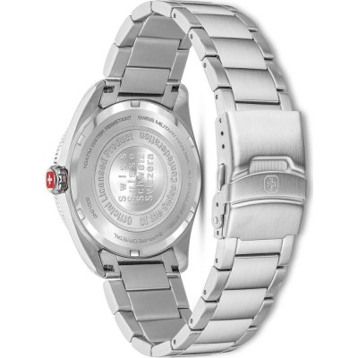 The watch is 10 ATM. This means the watch is suitable for swimming. The watch comes with Swiss Military 3+2.
