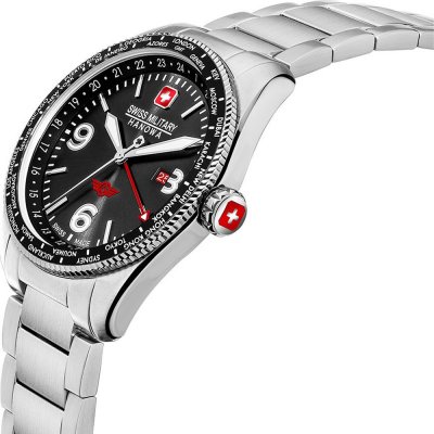 This Swiss Military Hanowa watch has a case made of stainless steel with a diameter of 42 mm and is fitted with a stainless steel band. Inside the case lies a Ronda movement and the watch features a Sapphire crystal.