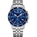 This Swiss Military Hanowa watch has a case made of stainless steel with a diameter of 42 mm and is fitted with a stainless steel band. Inside the case lies a Ronda movement and the watch features a Sapphire crystal.