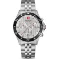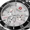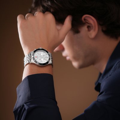 This Swiss Military Hanowa watch has a case made of stainless steel with a diameter of 42 mm and is fitted with a stainless steel band. Inside the case lies a Ronda movement and the watch features a Sapphire crystal.