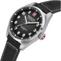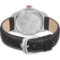 This Swiss Military Hanowa watch has a case made of stainless steel with a diameter of 42 mm and is fitted with a leather band. Inside the case lies a Ronda movement and the watch features a Sapphire crystal.