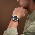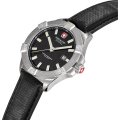 This Swiss Military Hanowa watch has a case made of stainless steel with a diameter of 42 mm and is fitted with a leather band. Inside the case lies a Ronda movement and the watch features a Sapphire crystal.