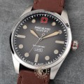 This Swiss Military Hanowa watch has a case made of stainless steel with a diameter of 42 mm and is fitted with a leather band. Inside the case lies a Ronda movement and the watch features a Sapphire crystal.